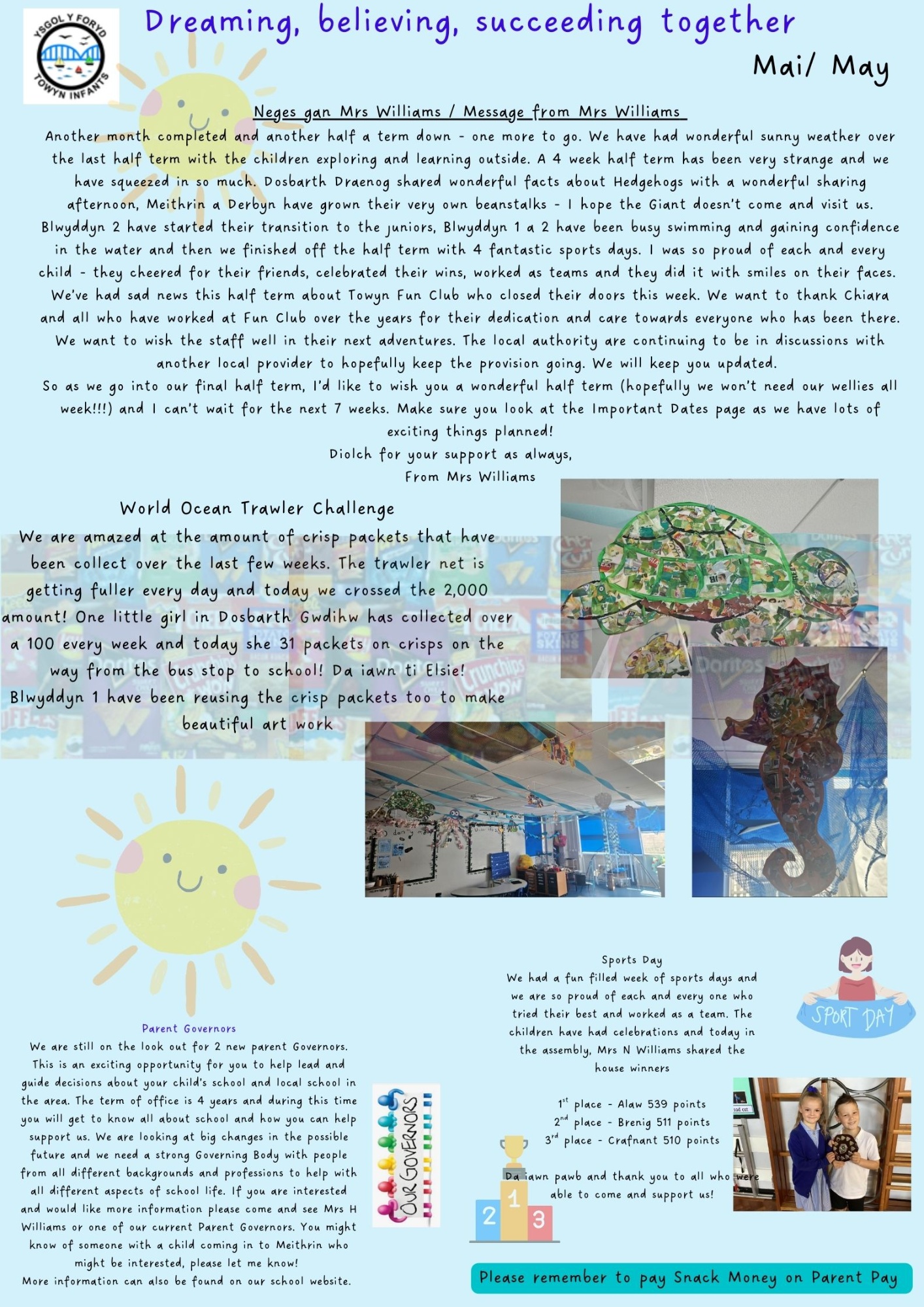 Edrychwch ar rein cylchlythyrau diweddara i weld beth sydd wed bod yn digwydd yn Ysgol y Foryd.