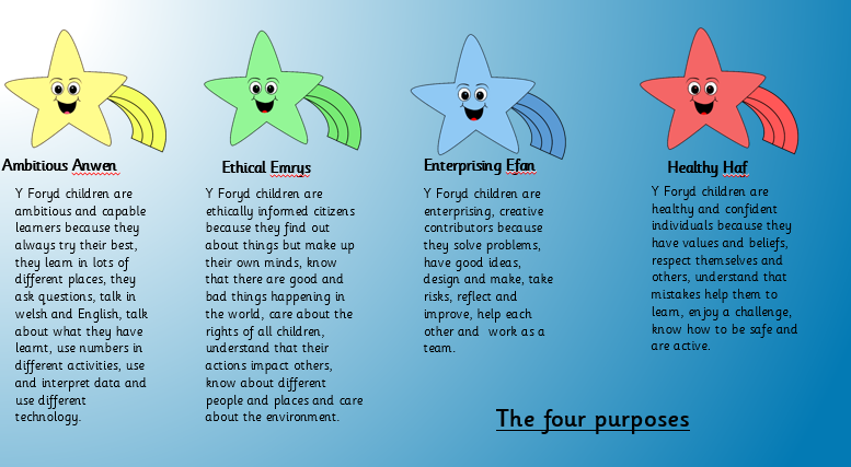 We believe that Readiness for Learning should play an integral part of our curriculum and we support our families from the first opportunity of meeting them during the Open Evening (the Autumn before they start with us). We have close links with the local nurseries which helps transition in to school life. The well being of the children, parents and staff are valued highly here at Y Foryd. Happy children will learn, happy staff will thrive and happy parents will support school and the development of their child.